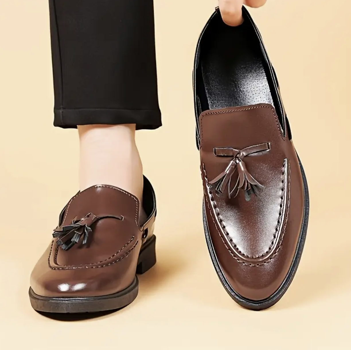 Men’s Slip-On Loafers with Decorative Bow – Formal & Casual Shoes, Lightweight PU Loafers for Business, Wedding, Office, Everyday – All-Season Elegant Footwear (Black) – Big & Tall Sizes Available, Dressy Shoes