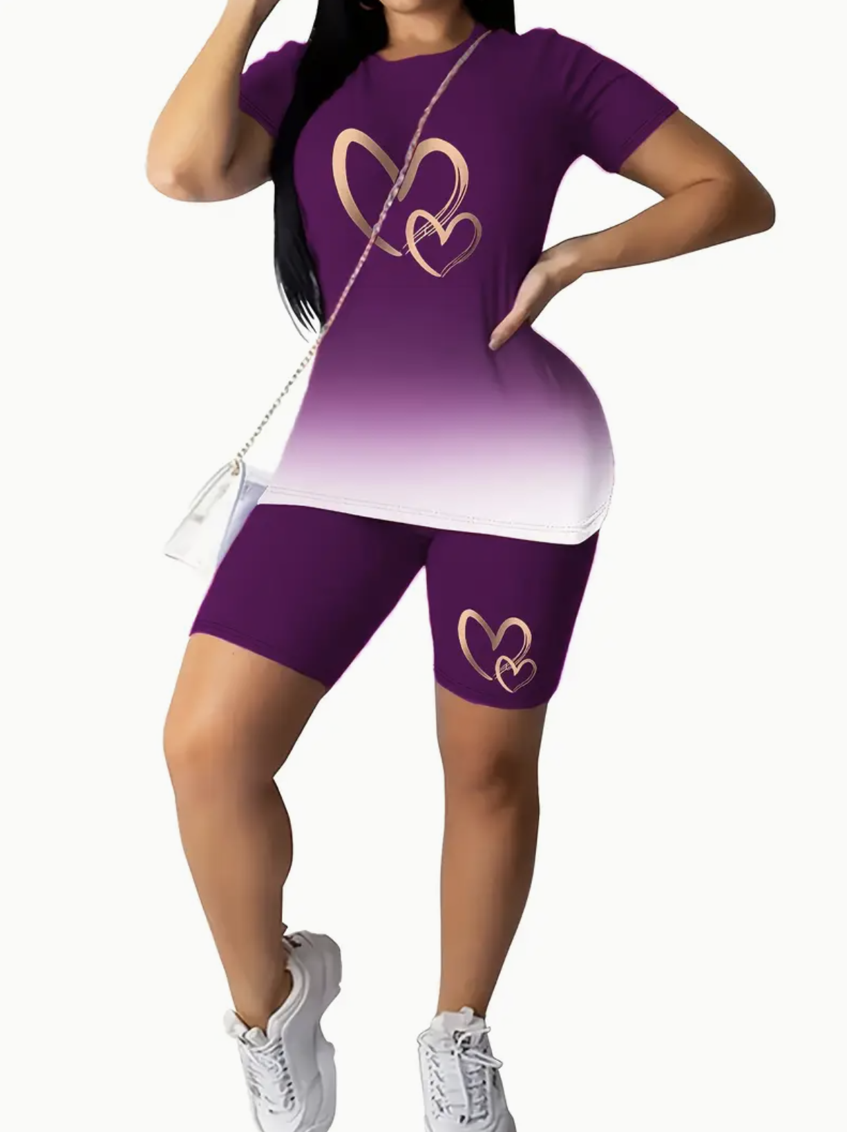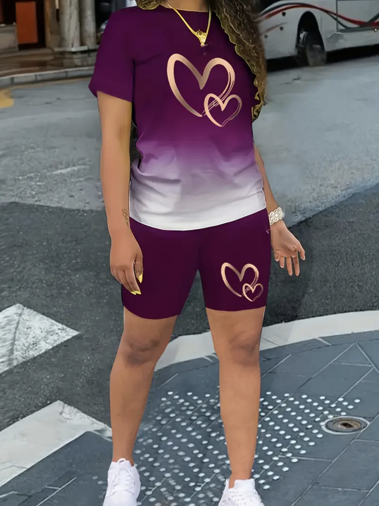 Gradient Color Love Element Spring/Summer Casual Two-Piece Set